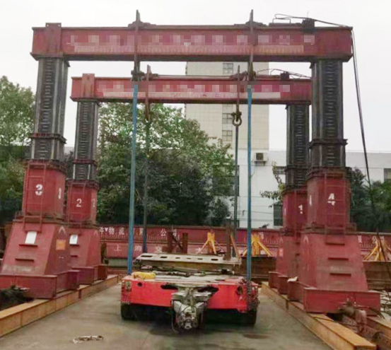 全液壓式門式起重機起重量單梁175t,雙梁起吊可達400t,整個門機使用液壓油為動力進行雙梁之間的跨度調(diào)節(jié),單梁兩鉤距的調(diào)節(jié),起升高度的調(diào)節(jié),大車軌道和起重量可根據(jù)現(xiàn)場起重需求任意更換,適合多種復(fù)雜環(huán)境下的作業(yè)。整機供電之后無任何電氣控制回路,各動作均為手柄操作直接驅(qū)動液壓換向閥完成。