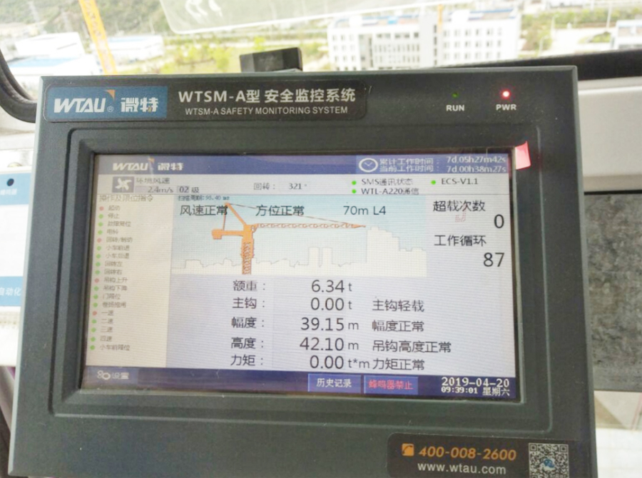 ▲微特WTSM-A型塔機安全監(jiān)控系統(tǒng)主機顯示屏