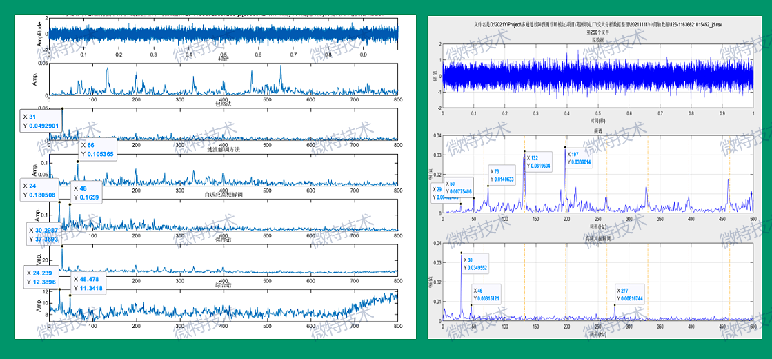微特創(chuàng)新研發(fā)的起重機旋轉(zhuǎn)機構故障診斷綜合譜診斷方法,從保障起重機運行安全的試驗數(shù)據(jù)多維度集成分析角度開展相關核心技術研究:針對起重機變轉(zhuǎn)速振動數(shù)據(jù)分析,研發(fā)相應的多維度分析算法、通用動態(tài)數(shù)據(jù)分析算法和故障特征提取算法。