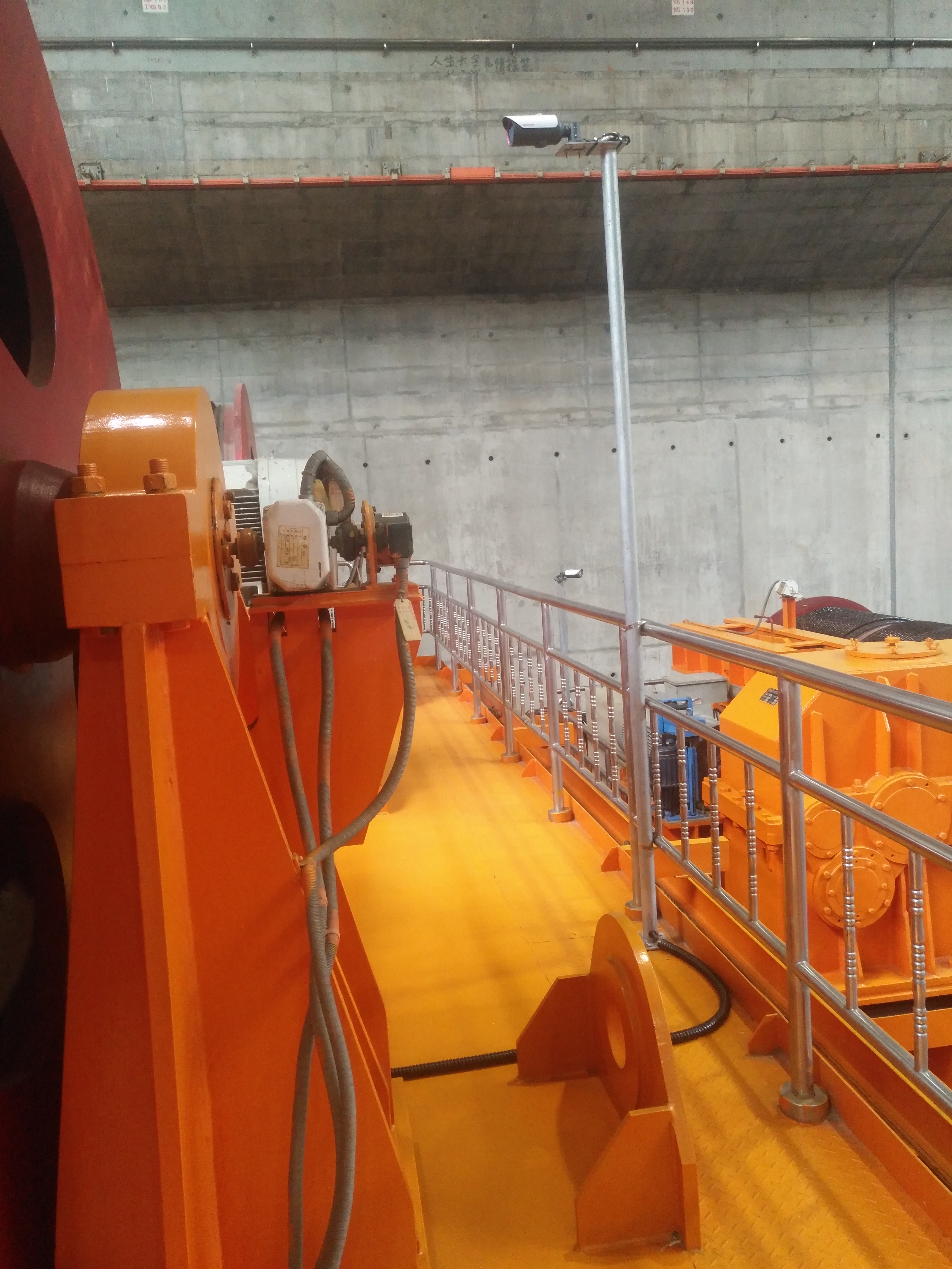 ▲壩頂門機大車上游左側(cè)攝像頭激光傳感器