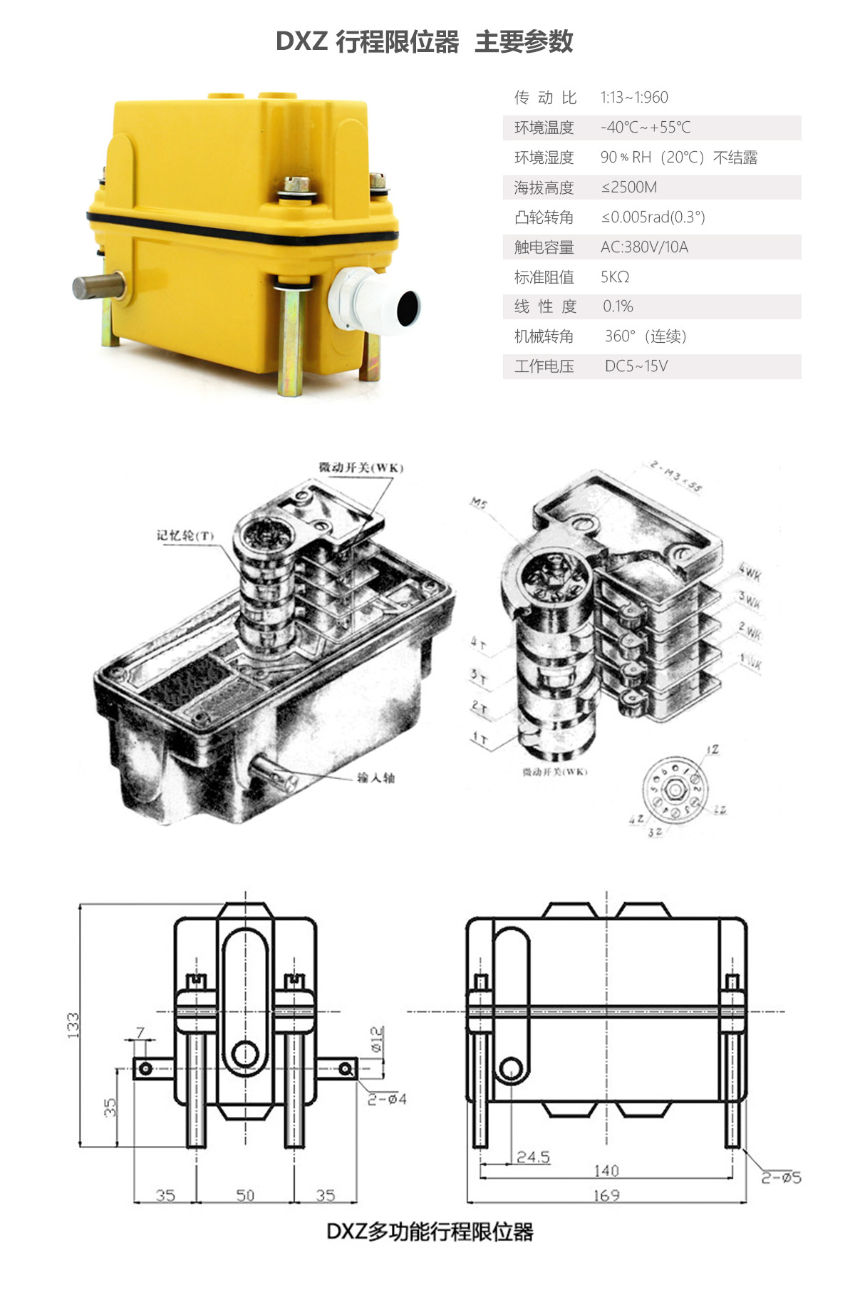 DXZ多功能行程限位器可廣泛應(yīng)用于建筑、港口、礦山等行業(yè)的起重、傳輸機械的空間三坐標(biāo)的控制和限位。