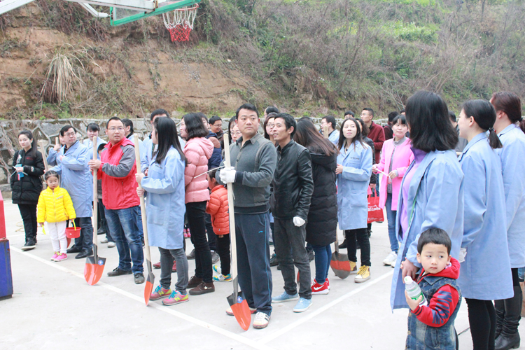 上午8:30,微特電子員工及員工家屬在后山籃球場(chǎng)集合,分發(fā)植樹工具及小樹苗。